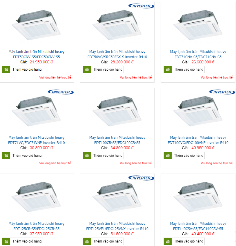 Tham khảo bảng giá mới nhất máy lạnh âm trần Mitsubishiheavy đúng giá đang được bán chạy nhất trên thị trường hiện nay