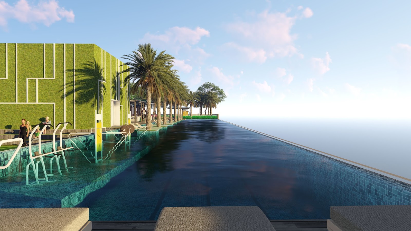 2- Lần đầu xuất hiện 2 hồ bơi chân mây 1000 m2 - Kết nối từ 2 tòa nhà cao 120m và Land Scape hơn 135m rộng 1000m2.