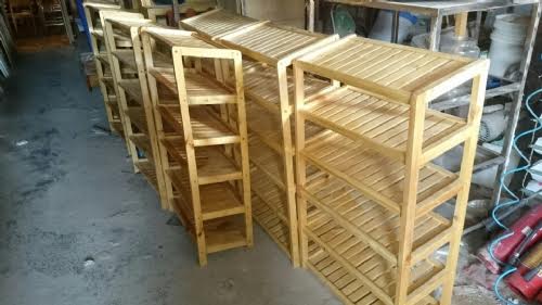 Kệ để giầy dép tuy là một món đồ nhỏ bé trong trong nhà, nhưng nếu không có những chiếc kệ hữu ích này thì chắc chắn những đôi giầy, đôi dép sẽ gây phiền toái cho bạn. Bạn không muốn mua những chiếc kệ để giầy dép bằng sắt, nhựa, inox bởi nó quá nhỏ hoặc quá lớn với nhu cầu sử dụng của bạn. Vậy thì tại sao mình lại không đặt mua giá, kệ để giày dép bằng gỗ thông nhỉ?- Sản phẩm được thiết kế để dép đi trong phòng ngủ, để dép có quai, giày hay những đôi cao gót thanh mảnh. Các thanh ngang chia tầng được đóng hơi vát chéo, giúp người sử dụng có thể để và lấy giày dép một cách nhanh chóng, không gây vướng víu khi thao tác.