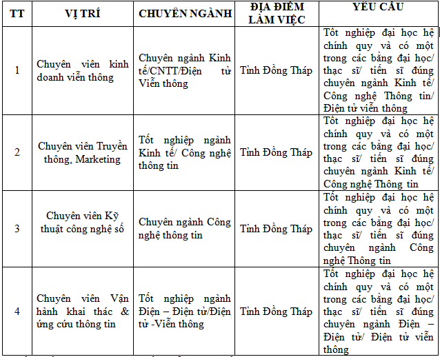 | 1.Chuyên viên kinh doanh viễn thông | 2.Chuyên viên truyền thông, Marketing | |